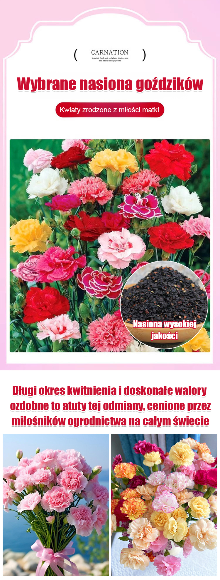 Nasiona Pełnego Goździka Całorocznego | Kwitnie 150 dni | Luksusowy zapach i łatwa uprawa 🌸